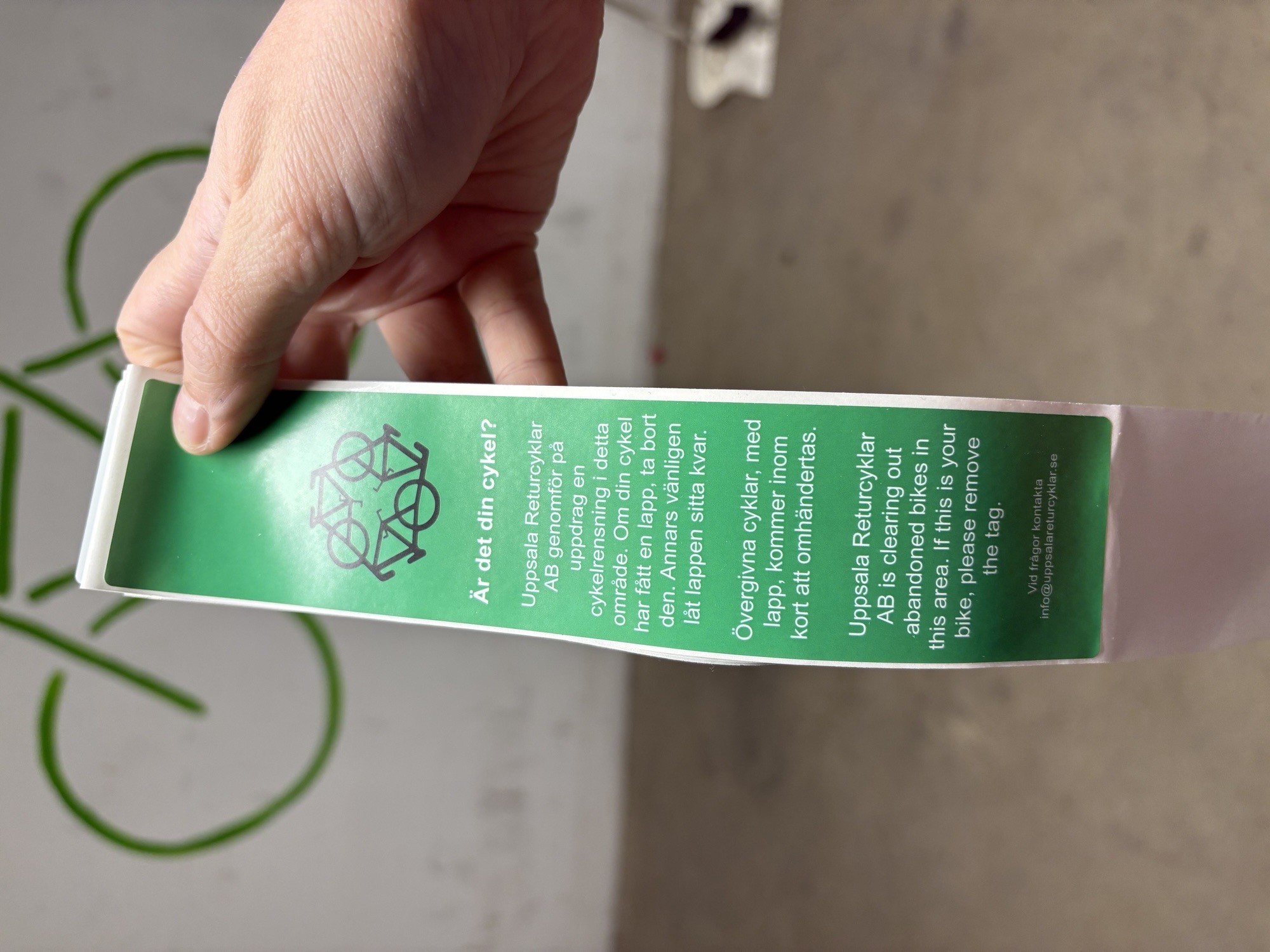 Hej medlem! Dags för rensning av cyklar. Vänligen lokalisera den gröna lappen på din cykel och ta bort denna om du vill ha kvar din cykel. Se bilder.